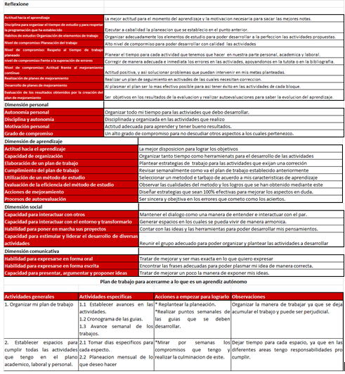 *Identificación del perfil de aprendizaje autónomo del estudiante mediante la presentación de la matriz solicitada en la instrucción de la actividad y su reflexión personal.
