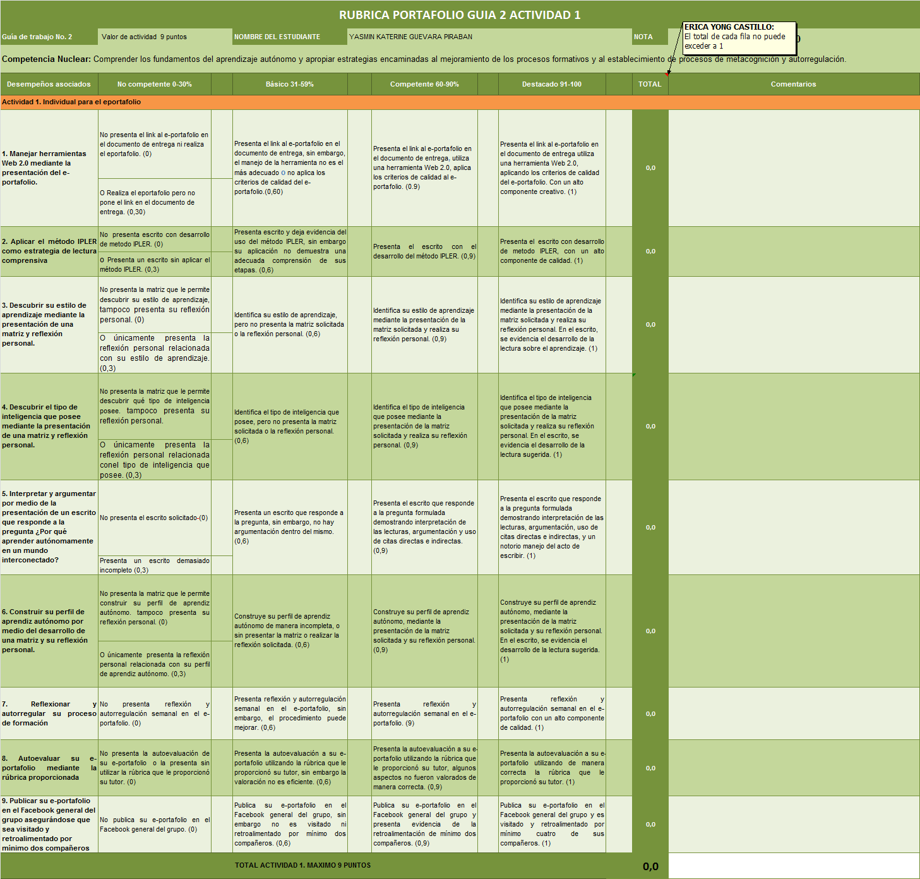 *Rúbrica de autoevaluación de su e-portafolio enviada junto con el documento de la guía 2 por el botón de actividades.